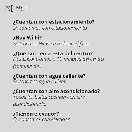 Konaklama tesisi, San Juan de los Lagos şehir merkezinden 1 km, Jesus Teran Peredo Uluslararasi havalimanından 70 km uzaklıkta bulunur. Otel da Parroquia de San Juan Bautista'a 13 dakikalık yürüme mesafesindedir. Mci Hotel, Santo Nino Del Cacahuatito'a kısa bir sürüş mesafesindedir.